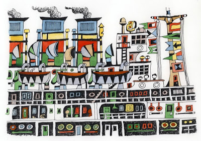 Detail, Vaya Laredo, pen & ink, 1998. Full work to be reproduced in The Sweetly Diabolic Art of Jim Flora, scheduled for Fall 2009 publication by Fantagraphics Books.