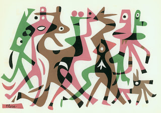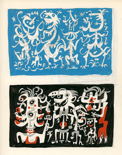 Unpublished (and likely unexhibited) artifacts from Jim Flora sketchbooks Tempera on paper, early 1960s Pen sketch, early 1940s