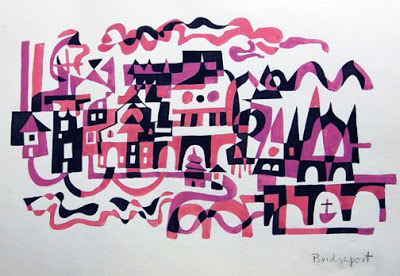 Pen & ink, 1992, discovered in sketchpad. Like most Flora works of the 1990s, this cityscape has never been published or publicly viewed.