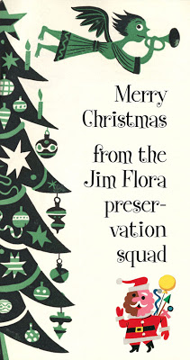 Christmas greetings Flora-style from Columbia/Okeh Records. Above: cover of the December 1942 new release flyer from Flora’s then-employer. James had not yet risen to the position of art director (he would in 1943); at the time he was just nearing the end of his first year in the art department under the legendary Alex Steinweiss.