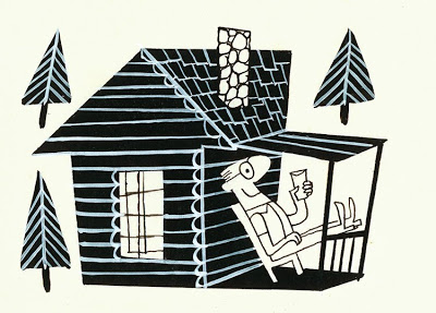 Detail of large-scale illustration for “A Meeting of the Clan at a State Park,” article in New York Times, October 14, 1956. This detail, reproduced (with the full illustration) in our second anthology, The Curiously Sinister Art of Jim Flora, is from a rejected version of the assignment found in the Flora family archives. The published version has similar elements, but repositioned.