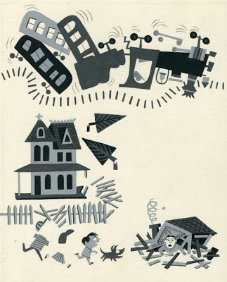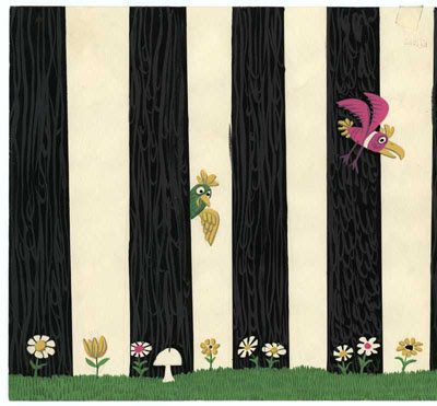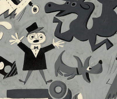 Detail, The Day the Cow Sneezed, tempera draft, 1957, courtesy the Dr. Irvin Kerlan Collection, University of Minnesota. A gallery of early Flora roughs and overlays from the Kerlan collection will be included in our next Fantagraphics book, The Sweetly Diabolic Art of Jim Flora (target publication date September 2009).