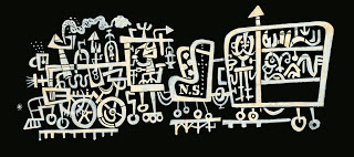 Choo-choo, woo-woo! Another small segment from a larger work (also featured in its entirety in The Curiously Sinister Art of Jim Flora). No date attributed to this work, nor is it titled, but its whistle has a familiar refrain. Jim Flora’s affinity for the railroad yard and its denizens dates back to the mid-1930s when he returned to his home state of Ohio after exploring a brief scholarship granted to him by the Boston Architectural…