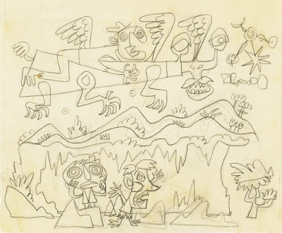 Tempera illustration from Sherwood Walks Home (1966), part of the James Flora Papers in the Kerlan children’s literature collection at the University of Minnesota. A chapter in our forthcoming Flora book will be devoted to images from the collection (the above is not included) and a profile of Dr. Irvin Kerlan, patron saint of tot-lit. We’ve previously posted several drafts and sketches discovered in the Kerlan vaults.