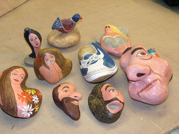 To celebrate becoming a nonagenarian, Clara has a retrospective art opening at the Ruth Hyman Jewish Community Center, in Deal NJ, on May 17 (two days after her birthday). The exhibit runs through June 30. In addition to oils, gouaches, collages, and mixed media, the exhibit will include a number of the artist’s painted rocks (pictured above).
