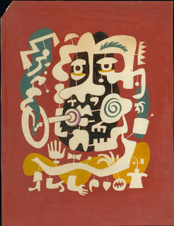 This tempera on paper matches the lower work displayed between Flora and Steinweiss. A name scribbled on the back reveals that it’s a portrait of the aptly named New Orleans jazz legend “Bunk” Johnson, an early trumpeter whose lips blew smoke in more ways than one.