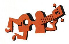 Guitar in a seductive pose — spot illustration from A-D Gallery invitation to Flora’s first New York City exhibition, June 1943.