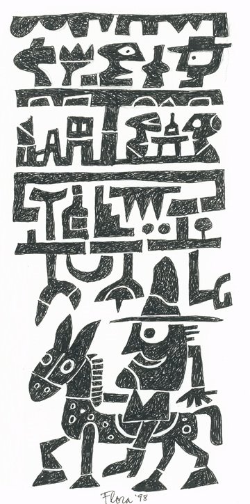 Detail, Vaya Laredo, pen & ink, 1998. Full work to be reproduced in The Sweetly Diabolic Art of Jim Flora , scheduled for Fall 2009 publication by Fantagraphics Books.